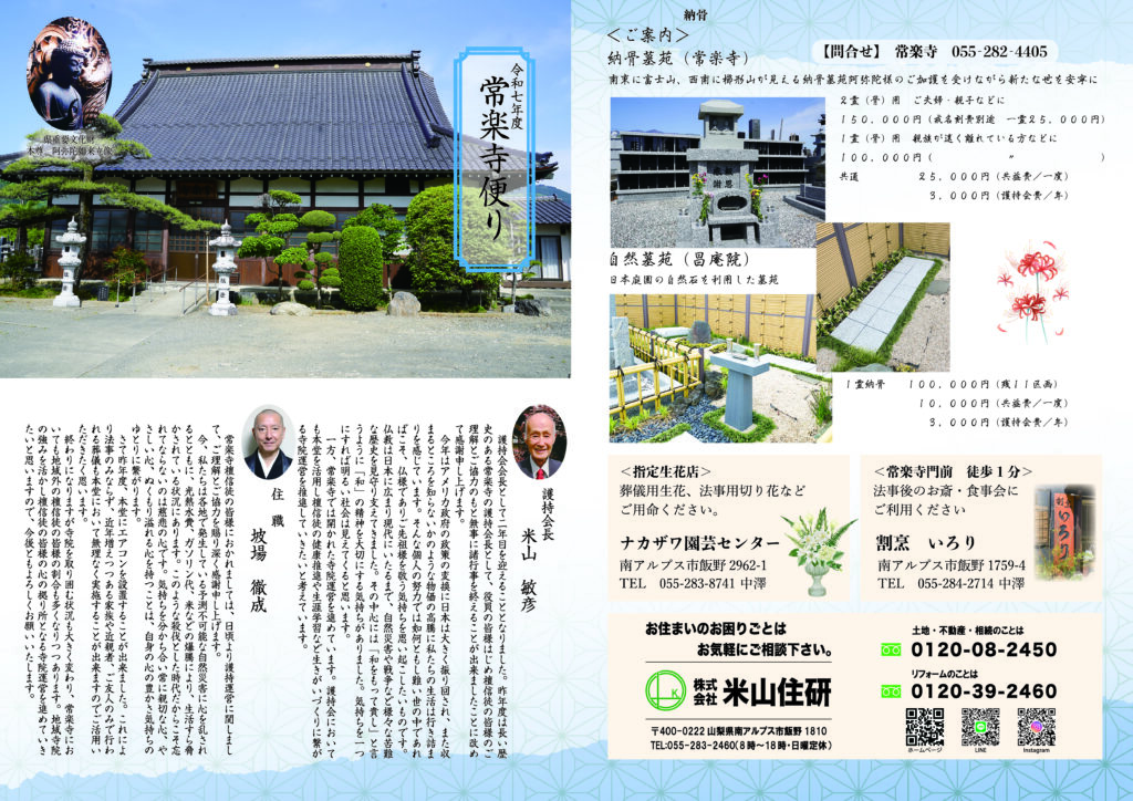 お知らせ info 「グリーフケア」を始めました 無料終活相談会(2025.9.12) フェイスブック 会報 ○2025年 jyourakuji2025-kaihouダウンロード 2024年 kaihou2024ダウンロード